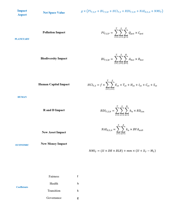 The proposed principle and metrics embed our responsibility for space impact into our value equations. Thus, they making finance inherently sustainable. They also allow our sustainability models to incorporate many more relevant aspects than E, S, and G (Environmental, Social, Governance Factors). Like, Technology (T) and Money (M).